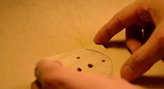 Tomar el recorte y trazar sobre una pieza extra de madera fina y gruesa. Localizar el extremo redondo cerca de uno de los bordes. Cortar la forma y tratar de igualar al fino (derecho de vivienda) usted sólo utilizado para rastro. La arena para permitir que las dos piezas que encajan entre sí como cerrar como sea posible. La pieza gruesa se utilizará como soporte para la pieza delgada cuando está pegados a la cara inferior externa. Estas piezas se denominará gruesa 4B y 5B fina.
