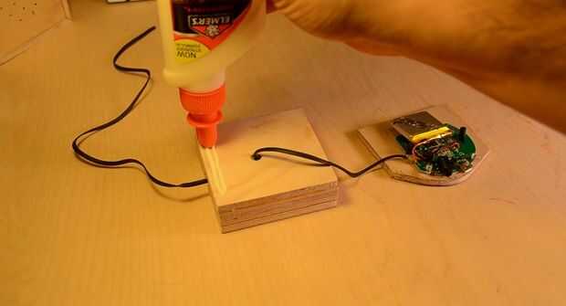 Cola delgada 3 a 2 de espesor. Pegamento 4 espesor para lograr 3. Fije el módulo de Bluetooth con los tornillos originales de la vivienda y el tornillo montajes/TA a 5 fina soldar el otro extremo del cable de 6 pulgadas para el módulo de Bluetooth.