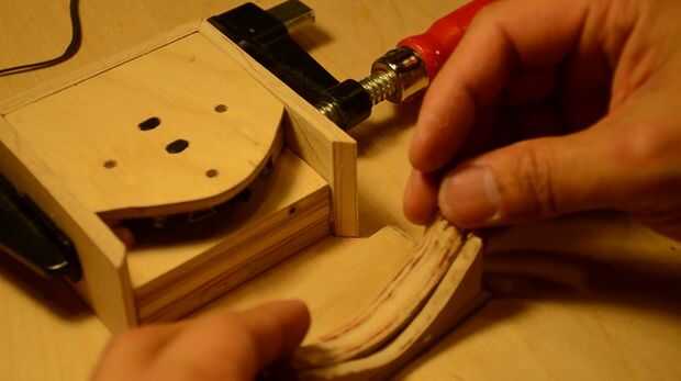 Usé una broca tallar dos círculos y había pegado piezas de Velcro en el borde inferior de la carcasa y en el interior de la cara inferior.
