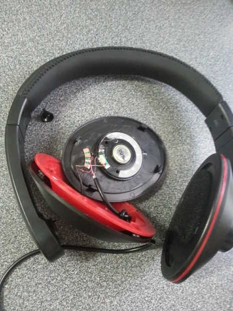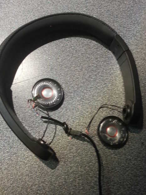 Por último, debe tener sólo dos altavoces con la diadema. Otra vez, ten cuidado porque los altavoces están conectados con los alambres frágiles.