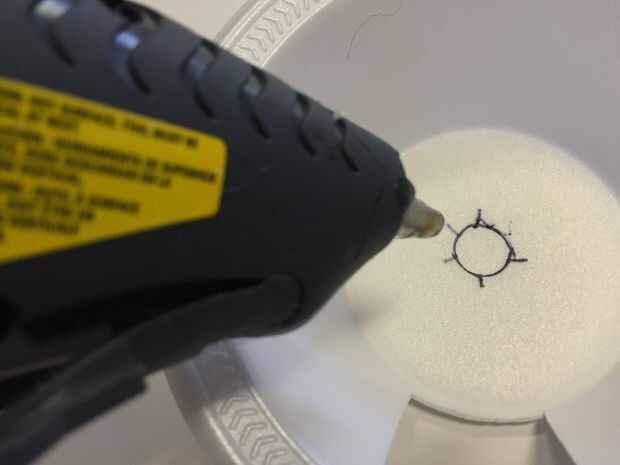 • Empuje el imán en el centro de la cola caliente y dejar enfriar.