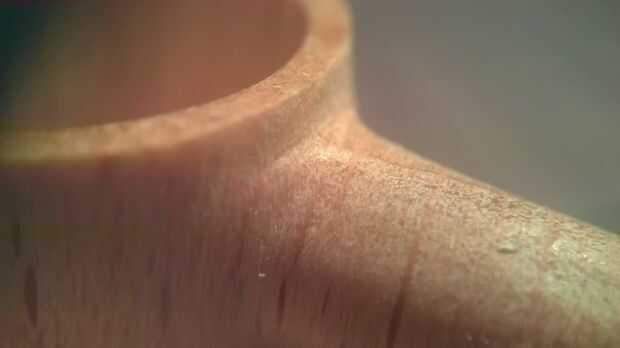 Ahora viene la configuración final con archivos de aguja y con la uña más pulido palos. En esta fase el espesor es de 1mm y menos en la parte inferior (tapa lateral). La tapa original es bamboleo, puesto que tuvo éxito para hacer la pared más fina que los originales.