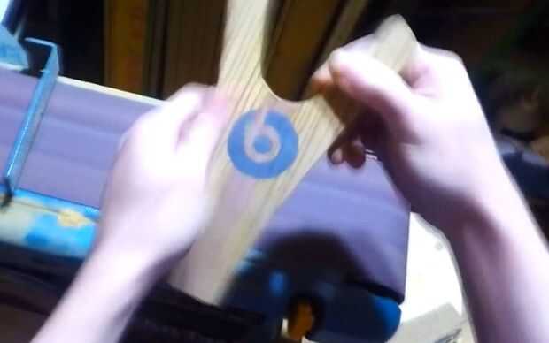 Usé una mini herramienta rotatoria, similar a una herramienta dremel para crear el logo en la madera. He marcado en el logo de beats y hecho Asegúrese de quitar toda la madera que necesitaba por lo que fue debajo de la superficie de la madera que quería mantener.