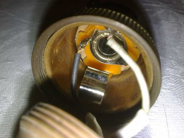 4. alambre de cable de los auriculares a la toma de 1/4 y empujar todo esto en el zócalo de la bombilla.