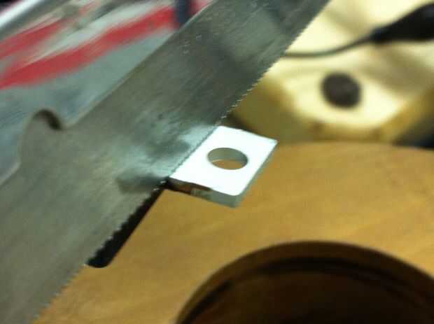 Abrazadera que el transistor apretado y la sierra hacia adelante y hacia atrás con una pequeña sierra para metales o cuchilla dentada Asegúrese de cortar todo el camino o se enganchará.