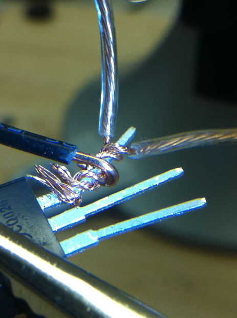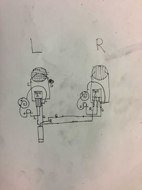 Las orejas son ligeramente diferentes, lo que yo estoy llamando a la oreja izquierda, tiene el receptor de jack donde se conecta la música. El canal derecho entonces va sobre la parte superior de la banda y hasta la Copa derecha alimentar ese circuito.