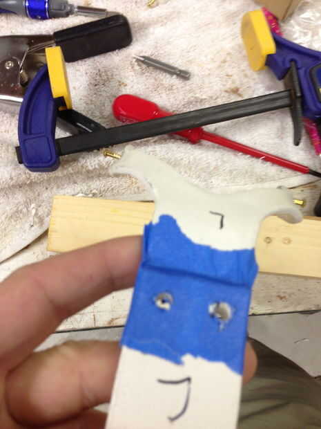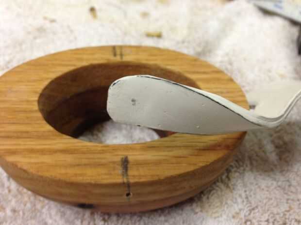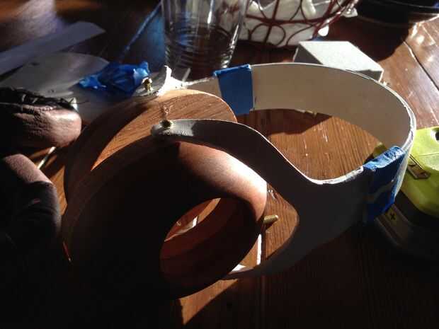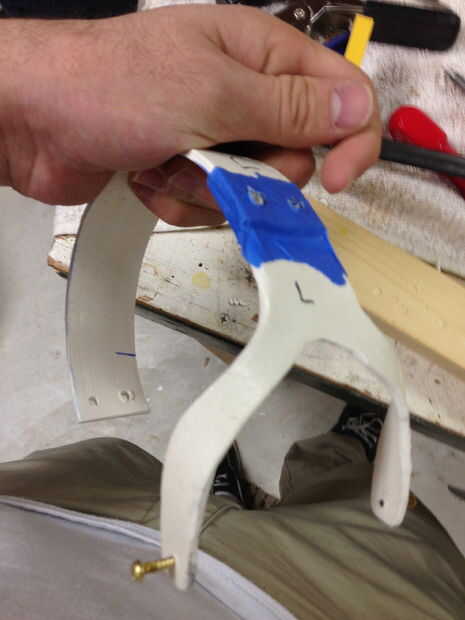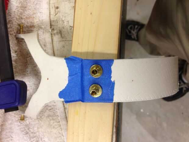 Cinta perforado las horquillas a la banda y asegúrese de que todo es la forma que desee. Una vez su marca perfecta donde estarán los agujeros. Seleccione un poco según el tamaño de su hardware. Descansar sobre una sección de madera mientras se taladra para conseguir un agujero limpio. Retire la cinta y tazas cuando se hace para pintar.