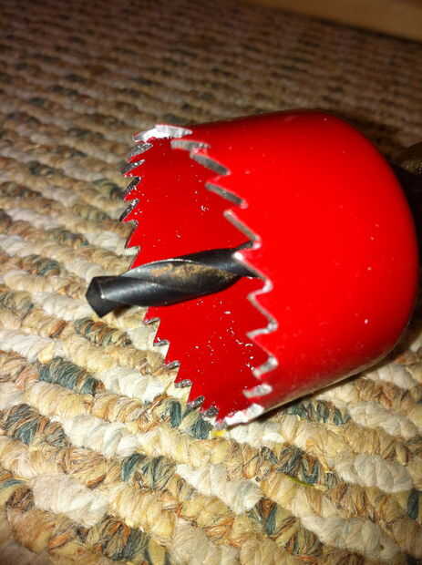 Usé una sierra del agujero de 1.5" para quitar de un 1.75" agujero con ella sujeta en la prensa de taladro del pedacito
