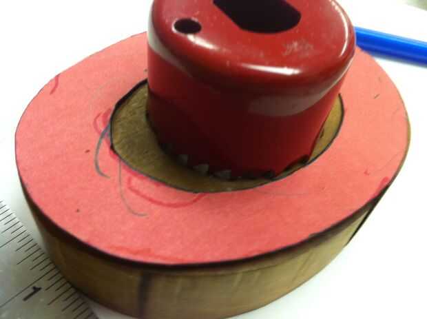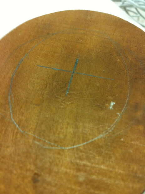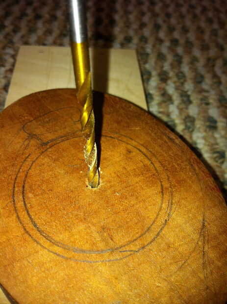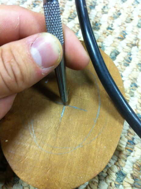 Encontrar el centro, marcar con un punzón, luego perfore con una broca pequeña.