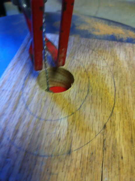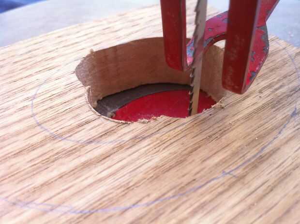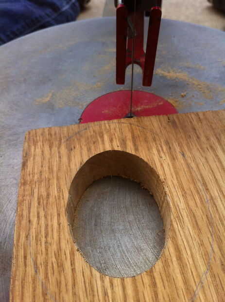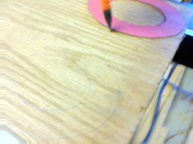 1. Utilice la plantilla roja para trazar sobre la madera de roble de 3/4"