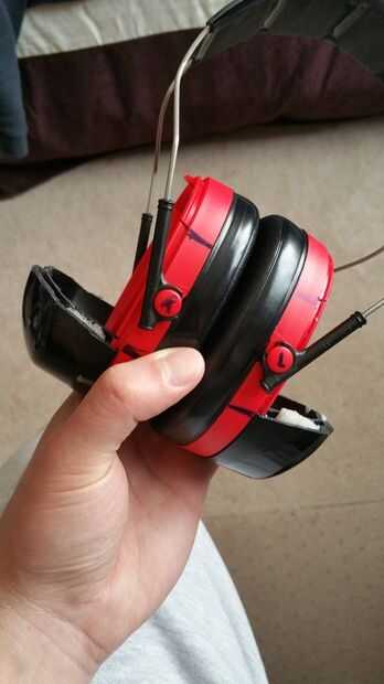 En este momento, también es una buena idea para elegir qué lado del auricular será la izquierda y que el derecho, y por consiguiente la etiqueta. Como se puede ver en las fotos, lo hice después de cortar los auriculares, que dio lugar a muchos dolores de cabeza. Así que hazlo ahora, si bien es agradable y simple. También debe quitar la espuma gris dentro de los auriculares. Sólo puede sacar con los dedos, pero tenga cuidado de no dañarlo, ya que lo necesitarás más adelante.