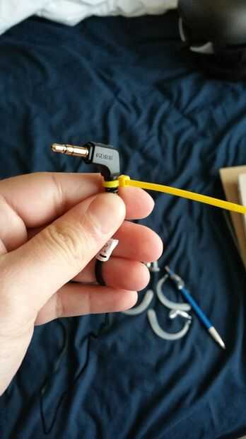 Ahora tenemos que etiquetar cada conjunto de controladores para el canal que emite. La forma más fácil en mi opinión es envolver una amarra de color alrededor de la toma, como se puede ver en la imagen. Esa manera usted siempre sabrá que jack va donde cuando usted necesita conectar. Los colores que usted necesita son de color verdes para los canales estéreo frontal, negros para los canales traseros y amarillo para el canal central/subwoofer.