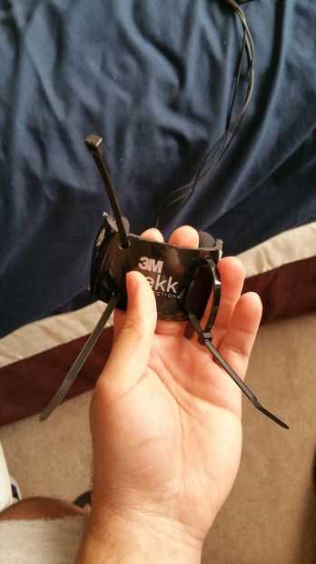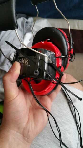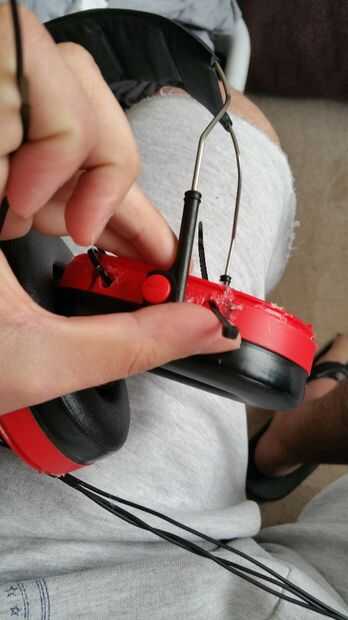 Para reunir el auriculares, empezar enhebrando zip lazos a través de la "Asamblea de Driver" como en la primera foto, que puede zip abajo. Estos servirán como puntos de anclaje para los otros lazos zip que sujete el ensamble del controlador a la montura. A continuación, enrosque lazos zip pequeño a través de los agujeros en el plástico rojo en las almohadillas, al igual que en las segunda fotos. Para ello en los cuatro orificios, a ambos lados de los auriculares. Código postal estas cerrado, pero no completamente. Ahora coloque ambas asambleas de controlador dentro del ring de plástico rojo como se muestra en la tercera fotografía. Alinee los bordes de la cáscara con las líneas originalmente dibujadas en la parte de plástico rojo y los conjuntos deben estar en el lugar adecuado. Ahora esta parte puede ser confusa: Enrosque una atadura a través de un medio cerrado en plástico rojo y bajo la amarra de "anclaje", como puede discernir que en la cuarta foto. Apretar este lazo del cierre relámpago y que pasando por el plástico rojo poco a poco, por lo que saque el ensamblaje de conductor cómodamente contra el interior zona de las almohadillas. Esto debe hacerse para cada uno de los lazos zip, pasando por el plástico rojo, hasta ocho en total. Después se recorta el exceso, debería verse como en la quinta foto.