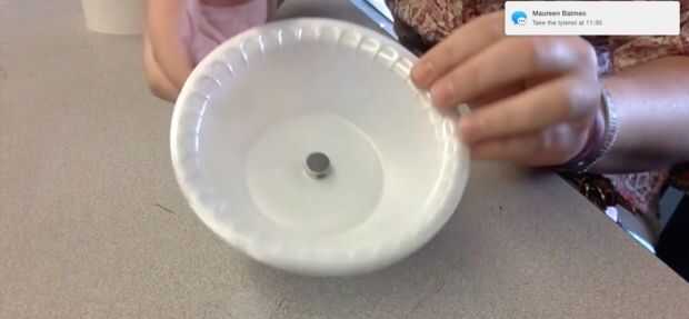 Tomar un tazón de papel, un trozo de metal y un imán de neodimio. Coloque el imán de neodimio en la parte inferior del tazón de fuente y la pieza de metal en la parte inferior exterior del tazón de fuente para que el imán se mantiene en un solo lugar. Crear una fina raja de 3 milímetros alrededor del imán.