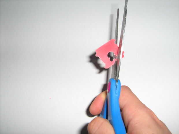 Vínculos de la bolsa de pan vienen en lotes de diferentes tamaños, así que elegir uno que te gusta y si (como el mío) necesita un agujero más grande, dar un recorte con unas tijeras. Viola! Método instantáneo sin enredos!