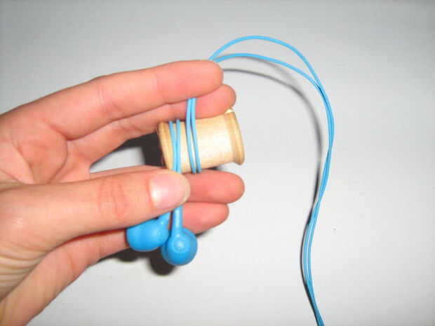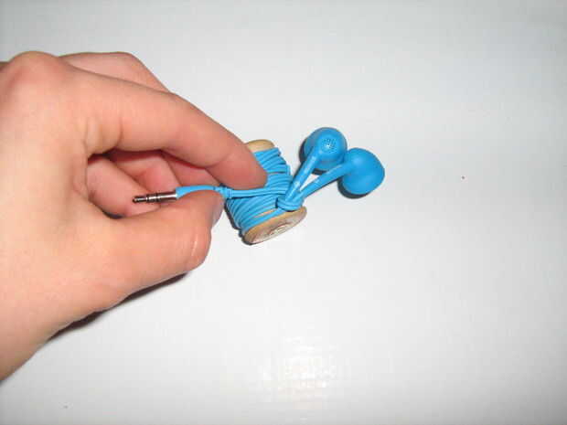 Envolver las bobina audífonos primero y luego bucle final alrededor de los audífonos antes de pegar el extremo abajo de la válvula de seguridad y almacenar lejos.