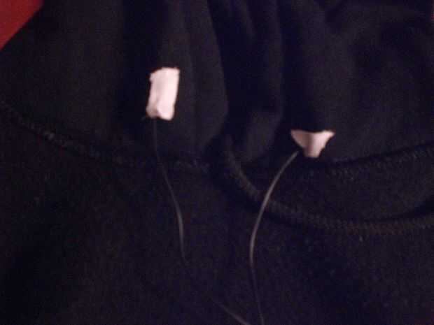 corte un hol no en la zona fueron la cadena va a cada lado y sus auriculares en la alimentación. poner su derecha con capucha a n puesto en ajuste. ¡ Diviértete a sacar los auriculares Si lava la sudadera con capucha.