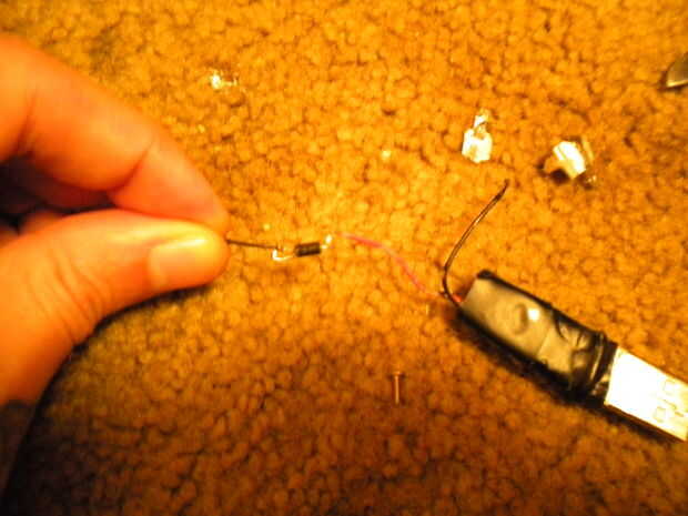 Una vez que tengas todo estañado, comenzar la negativa negativa y hacer lo mismo con el cable USB positiva y el diodo del transmisor de soldadura.