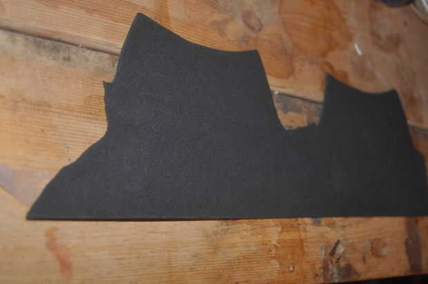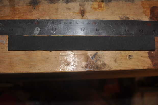 a continuación, tienes que medir el bucle del cable. Usted debe ser capaz de empujar el cable en la ranura y tire de ella. Por lo tanto, usted debe ser capaz de medir una longitud de cable que se adapta a la banda. Una vez que tenga una buena longitud de cable, tomar pequeños trozos de cinta aislante y cinta adhesiva el cable por debajo de la banda. No iniciar grabación en el centro de la parte inferior de la banda; Comience en un extremo (por lo que si tiene adicional o necesita más cable, usted puede sacarlos lo y fuera de la ranura). Una vez que está todo bien y con cinta, sacar la pieza larga de espuma. Mida el ancho de la parte inferior de la banda y cortan ese ancho de la espuma. Una vez que tengas un buen ancho para el pedazo de espuma, corte una tira larga con ese ancho. Entonces ver cuánto la pieza de espuma debe estar encajando en la banda (Yo utilicé una pieza de 10 pulgadas). Luego corte la longitud adecuada. Por último, caliente pegue cuidadosamente debajo de la banda.