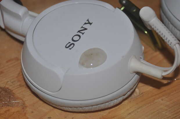 Por último, caliente pegamento el jack de teléfono principal en el altavoz. Estos auriculares, sin embargo, un espaciador fue necesario para que todo encajaría. Para hacer este trabajo, poner un pegote de pegamento caliente y esperó hasta que seca. Luego, escribir un segundo pegote de caliente pegamento en cola el gato por lo que el espacio era perfecto.