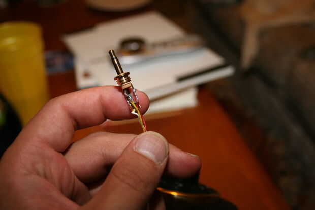 Una cosa para recordar: antes de que suelde los cables a la toma, recuerde deslizar el mitigador de la tensión, cubierta exterior y la vaina de plástico poco sobre el alambre. Si la soldadura, entonces Recuerde que hacer estas cosas, usted está jodido. (no, recordé en el último segundo. Lucky me.)