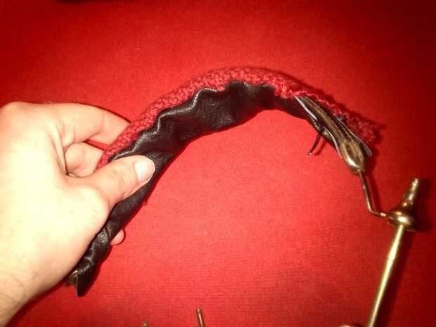 También hice el puente de auriculares más suave. Hice un "bolsillo" del woolcloth y cuero y rellenas con un poco de espuma.
