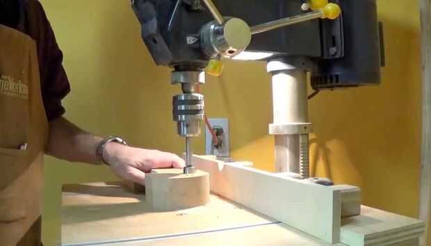 Hemos perforado los agujeros de media pulgada de diámetro con una broca Forstner para los ojos, pero sólo en uno de los titulares de los auriculares. Nuestros diseños fueron divergentes.