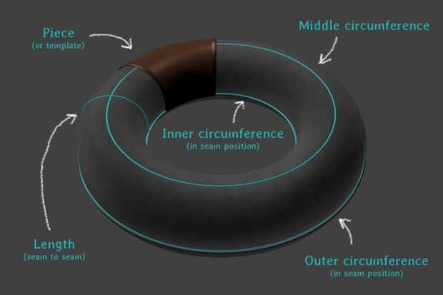 Medir distancias. La mayoría de ellos es doblar así uso medida medidor o hilo y comparar su longitud con la regla. Necesita fuera de la circunferencia, dentro de la circunferencia y la longitud entre ellos. Muy importante es la circunferencia de la pieza de plástico utilizado para sujetar las almohadillas. Medir longitudes de fianza (a lo largo de la línea de costura) y su anchura en varios puntos.