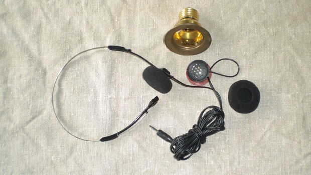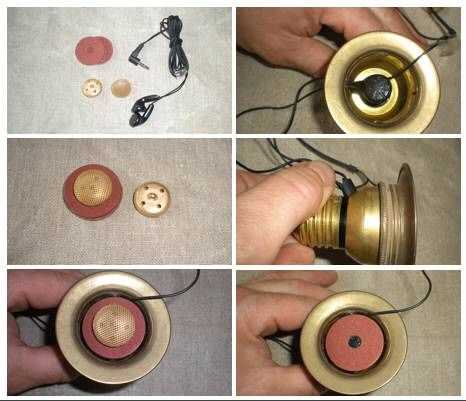 Por lo tanto puede utilizar un nuevo par de auriculares u otro par de auriculares baratos como se puede ver en las siguientes imágenes para poner en las conchas de bronce nuevo. Para cubrirlos puede utilizar mi material más querido de la fibra o alguna pieza de madera contrachapada o lo que quiera. Tomé un pomo de latón con estilo de la ropa y ponerla en el centro como se puede ver.