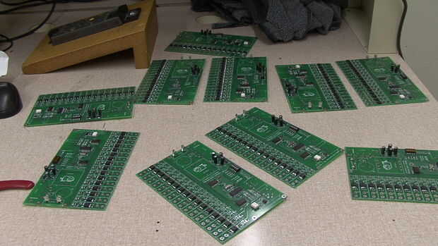 Hemos optado por utilizar componentes de montaje superficial principalmente, ya que a través del agujero los diseños son casi obsoletos estos días. La mayoría de los miembros del equipo nunca había tocado un soldador antes, por lo que nuestro proyecto tuvo una fase de enseñanza. Afortunadamente los miembros de una pareja fueron expertos experimentados y bajo su guía, pronto todos se soldadura lejos.