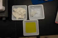 Usted tendrá que determinar los ingredientes de su jabón usando una calculadora de jabón, utilizamos www.soapcalc.net. Los ingredientes que usamos fueron aceite de coco, aceite de oliva, Walmart grasa vegetal y azúcar morena. El equipo que se requería era un vaso de precipitados de 1 litro, un plato caliente, solución de NaOH de 10,3 M de 150 mL, un termómetro y moldes para tu jabón terminado. Algunas precauciones que deba ser tenido en cuenta antes de comenzar el laboratorio. Gafas de seguridad deben llevarse en todo momento junto con guantes debido a las características básicas de hidróxido de sodio que se utilizará a lo largo de este laboratorio. Si hidróxido de sodio debe entrar en contacto con su piel en cualquier momento un agente de neutralización, como vinagre, debe aplicar y luego frotó con agua hasta que quede completamente limpia. Un agente de neutralización debe ser disponible en todo momento a lo largo de este laboratorio.