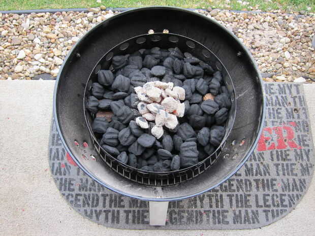 Para el método de súbdito utilicé un encendedor para chimenea a la luz unos 15 trozos de carbón y una vez que una ceniza blanca agradable en ellos, vierte en el centro de la cámara de carbón. Esto permite que el otro carbón a la luz lentamente y sostendrá las temperaturas incluso en el ahumador para 5-6 horas. Esto puede no ser el mejor conjunto para arriba para su cocina particular así que usted tendrá que ajustar en consecuencia su técnica.