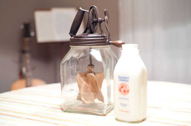 Heredé una maravillosa mantequilla antigua mantequera que vino de la granja de mi bisabuela. De lo que puedo decir es a partir de 1920 temprano. Cuando el trabajo era significativo, las comodidades eran pocos y los tiempos eran difíciles. Los Estados Unidos sólo vio el final de la guerra mundial 1 y estaba a punto de entrar en la gran depresión. Este dispositivo simple de la cocina, sin duda, podría decir algunas historias asombrosas - escuchadas a través del crepitar de la radio AM: triunfos y angustia, los hombres del aterrizaje en la luna y las bombas en Pearl Harbor, el aumento de la libertad y la caída de los nazis. Es bien usado, un poco torcida y reparada. Nos recuerda que no todas las cosas en la vida deben ser fácil o desechables.