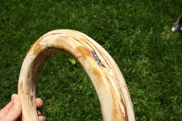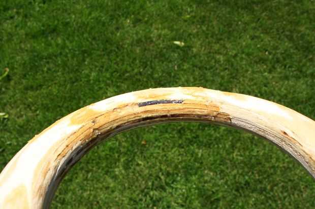 Llama tu sufrido unos chips durante el uso de la Sierra de vaivén o lijar herramientas, por lo que es aquí donde volví y lleno en los feos agujeros con epoxi, dejar secar y luego resanded. Elegí epoxy sobre madera porque sé que cuando se seca de epoxy se convierte en sólido, teniendo en cuenta cuanto peso los anillos van a soportar que pensé el llenador de madera habría sido más de una solución cosmética que estructural.