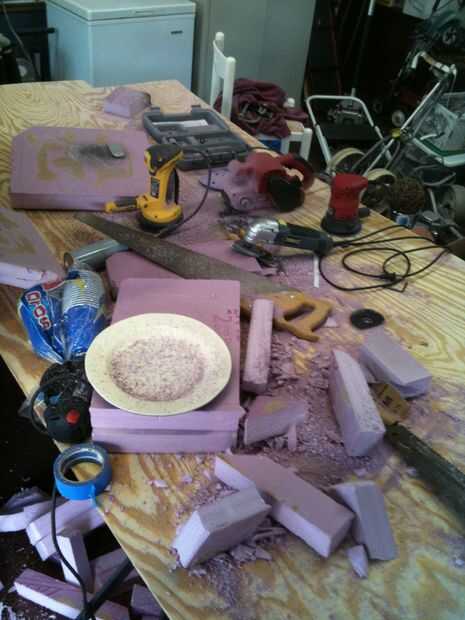 Este paso hacer tomar algo de tiempo, así que tener paciencia. La espuma arenas bastante fácil y hace un tremendo lío. Como se puede ver, este polvo rosa obtiene por todo el lugar. Pero una vez que han lijado lo suficiente, su cañón se verá algo como esto.