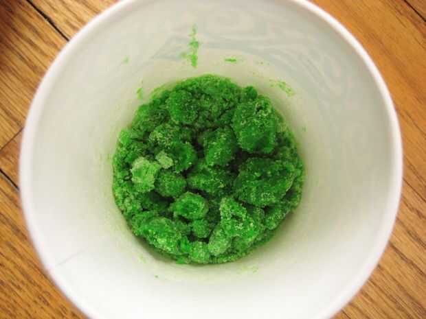 Poner toda esa papilla de sabor/azúcar/ácido a la dextrosa restantes en la taza de papel. Mezclarlo todo. Revolver otra vez cada pocas horas se seca-que se descomponen en un polvo de pixie stick como se seca.