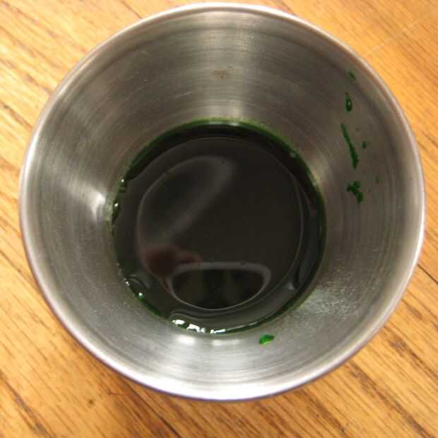 Añadir 2 cucharaditas de jugo de fruta o 2 cucharaditas de agua al taza de metal/ácido. Disolver el ácido en el agua completamente antes de continuar.