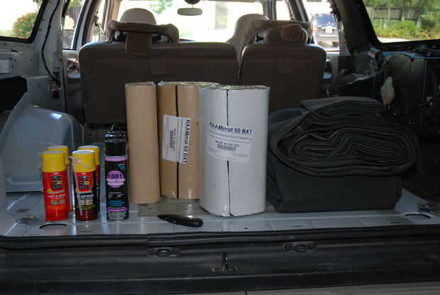 He utilizado herramientas ya tenían en mano. He comprado materiales de amortiguamiento sano de http://www.raamaudio.com y mi tienda Ace Hardware - vea por favor para un completo herramientas y listado de materiales y algunos costos. Hasta ahora el gasto total es un poco más 400 dólares y muchas horas de trabajo.
