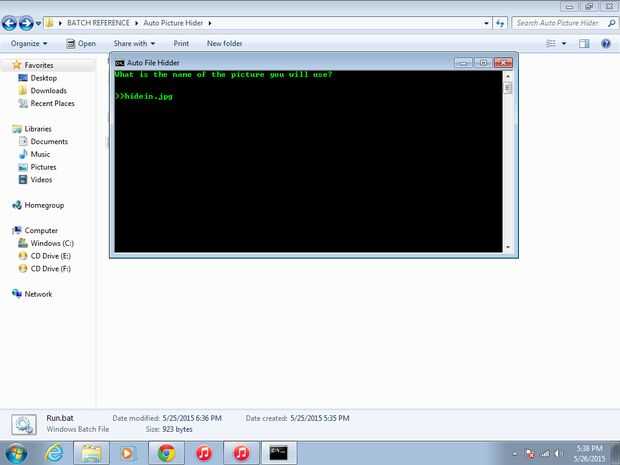 Escriba el nombre de la imagen y pulsar intro, en este caso hidein.jpg