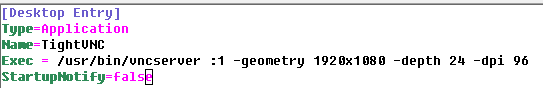 Una vez en esta carpeta se puede hacer un archivo para iniciar el servidor de vnc, llamarlo "vnc.desktop"