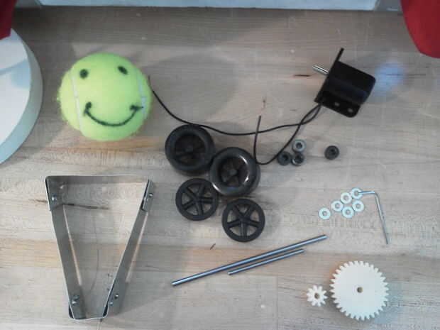 13. Perfore orificios al tamaño deseado de su eje. Montar el eje en los orificios. (Antes de poner el árbol a través de ambos orificios Deslice el gran engranaje de estímulo sobre el eje).