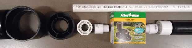 6) colocar una adicional 3 pulgadas de 1 adaptador de tubo de PVC pulgadas en el macho de 1 pulgada rosca