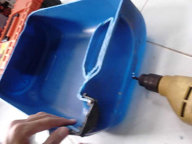 1. Perfore un agujero en el nivel más bajo de agua de su growbed. La mía es alrededor de 3cm de growbed base. Agrandar el agujero con el taladro moviéndolo todo hasta cerca de su botella de diámetro exterior (ajuste apretado es mejor/más fuerte, Foto 1)