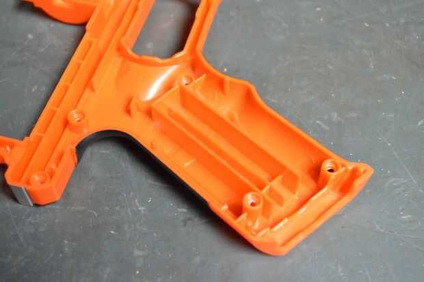 1. más armas de Nerf con una sección de armado que usted tire hacia atrás para amartillar el arma. Esto puede ser un gran lugar también almacenar la batería.