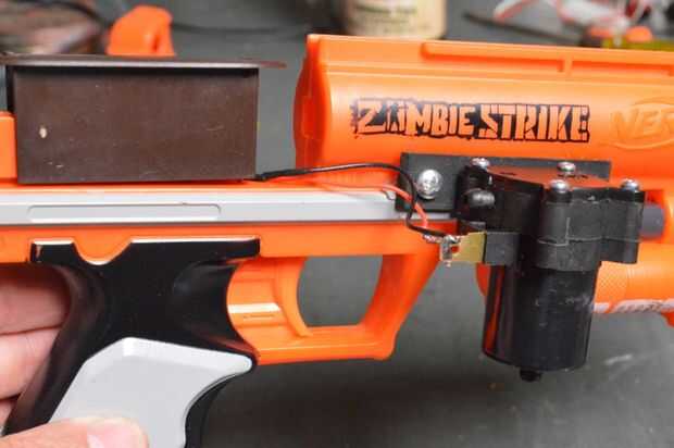 3. pegamento batería caso demasiado un lado de la pistola. Recuerde que usted necesita poder mod todavía el interior de la pistola para pegar la caja de batería a ambos lados de la pistola no funciona