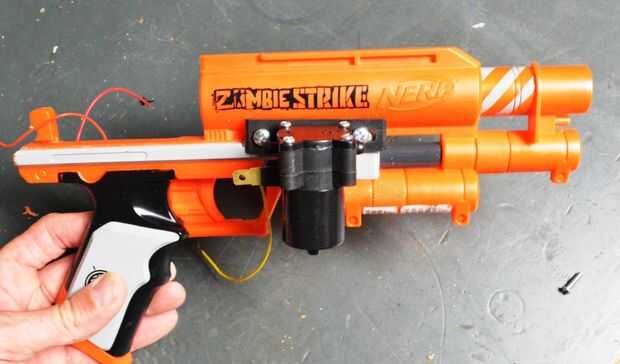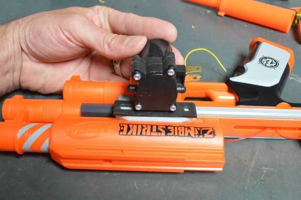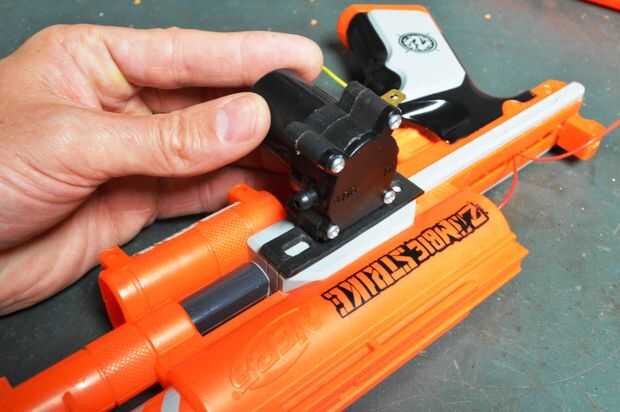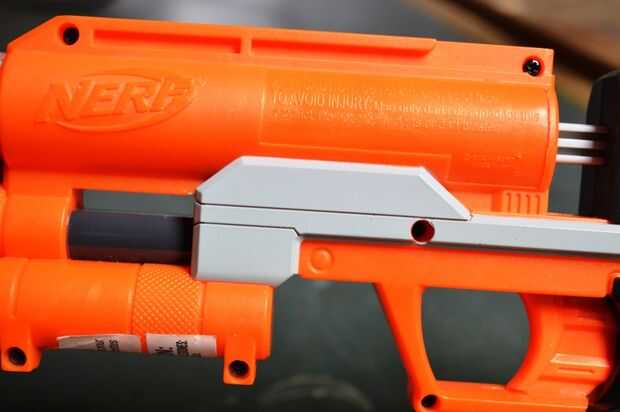 Dependiendo de qué arma utilizas determinará donde añadir la bomba. Juguete quiere asegurarse de que la en y hacia fuera de las secciones de la bomba están alineadas de la manera correcta.
