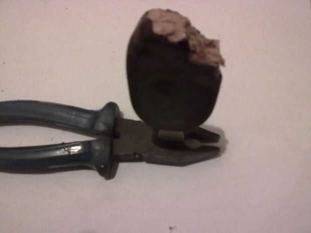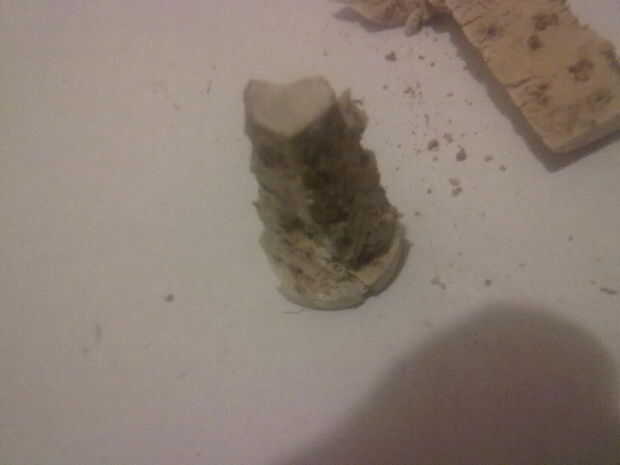 Así que... Tomé unas pinzas para sostener mi helado y luego empezar a trabajar en un corcho (no creo que se trata de un corcho real, pero es eficiente para esto).