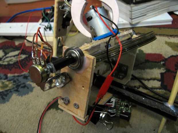 Foto 2: muestra un primer plano del potenciómetro conectado al eje del cardán del giroscopio. Funciona muy bien y es un indicador preciso del ángulo del rotor.