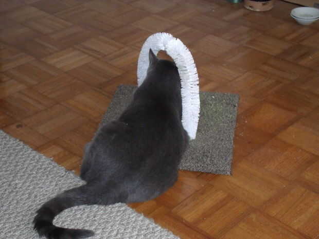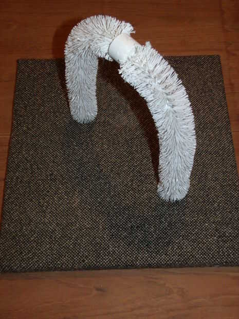 Ahora apriete poco de pegamento en cada extremo del cepillo y que encajen en los orificios de la placa base. Cuando el pegamento se seca, haya terminado. Para introducir a tus gato y gatos, espolvorear un pellizco de gato en ella, sentarse y disfrutar!