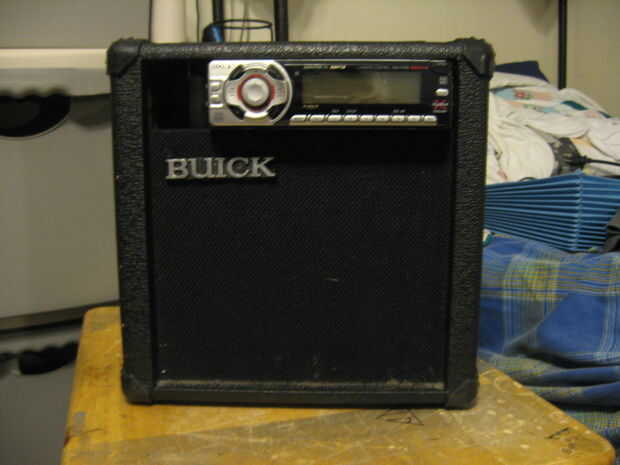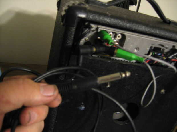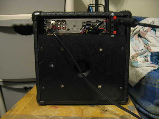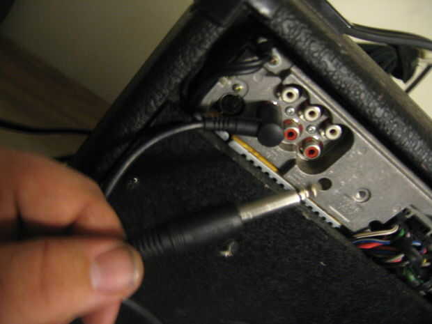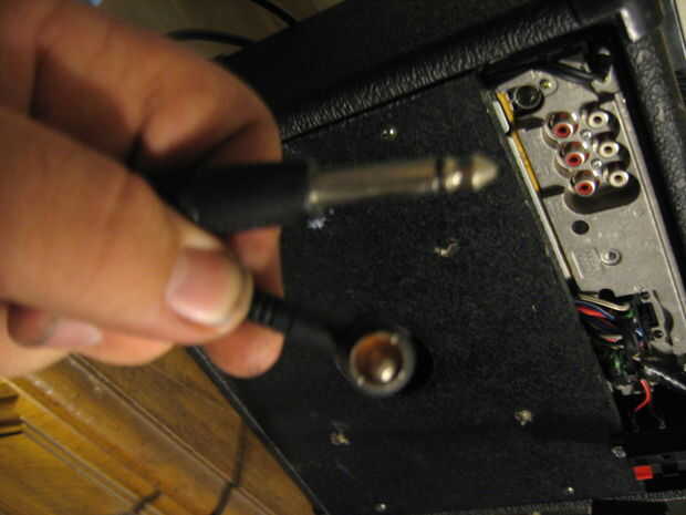 Esta unidad todavía funciona como un amplificador de guitarra si enchufa en la entrada auxiliar en la parte posterior. Simplemente no hay distorsión o función overdrive. Usar 1/4 de pulgada para cable de clavija RCA mono que compré en radioshack para ~ $6. He subido algunas fotos de cómo ponerlo para arriba...